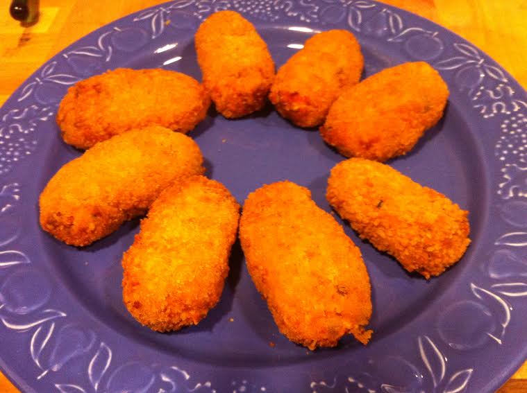En una sartén se mezcla la harina con una cucharada de aceite, se dora un poco, se saca del fuego 2 minutos, se añade la leche, se vuelve a poner en el fuego, y remover la mezcla hasta obtener la consistencia espesa de la bechamel, salpimentar. Mezclar con el preparado de zanahoria. Dejar enfriar en la nevera. Cuando la masa este fría, hacer la forma ovalada a las croquetas y rebozar en pan rallado, después freír las croquetas aceite de oliva caliente hasta que estén bien doradas.