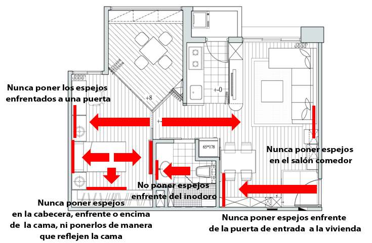 • En general hay que tener en cuenta que todo espejo duplica lo que refleja, por eso nunca debe reflejar suciedad, desorden, o imágenes desagradables.
