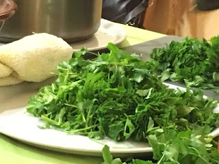 Un paquete de seitan, manojo de cilantro, aceite de sésamo, árame, orégano, jengibre fresco, shoyu, arrurruz,