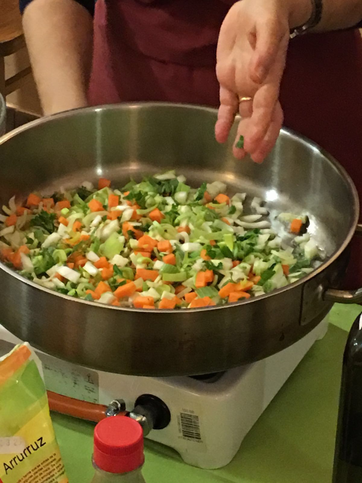 Preparación: Hervir la quínoa (agua 3×1 de quínoa y pizca de sal) –cortar en cubos el hinojo y la calabaza, saltear junto con el puerro y perejil, en la sartén manchada de aceite de sésamo, luego agregar la quínoa ya hervida con anterioridad remover, probar y dejar al punto.