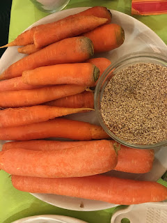 Tres zanahorias, sésamo blanco, aceite de sésamo, sal marina.